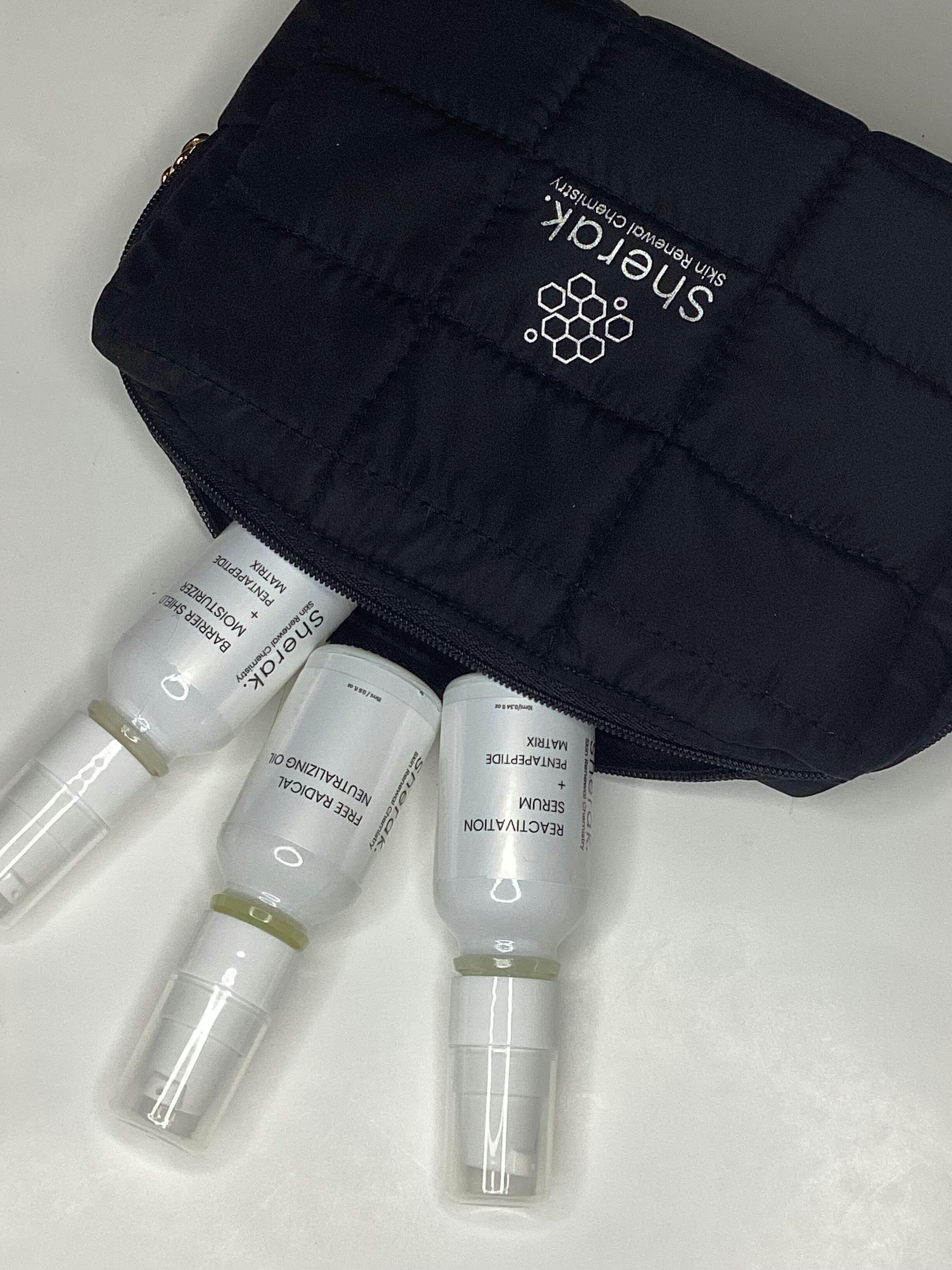 gifted by sherakskin This is the perfect travel set and includes everything you need, from a cleanser to a serum to a moisturizer that doesn’t feel heavy or oily. The Sherak System Travel Set makes sticking to your skincare routine while traveling effortless, with products that layer well and leave skin feeling clean, hydrated, and balanced. Each step works together to support healthy-looking skin without irritation or greasiness. The travel bag is also small enough to throw into your travel bag, but big enough to fit other items as well, which makes it incredibly convenient. It’s an ideal option for weekends away, flights, or anyone who wants a complete routine in one compact set.