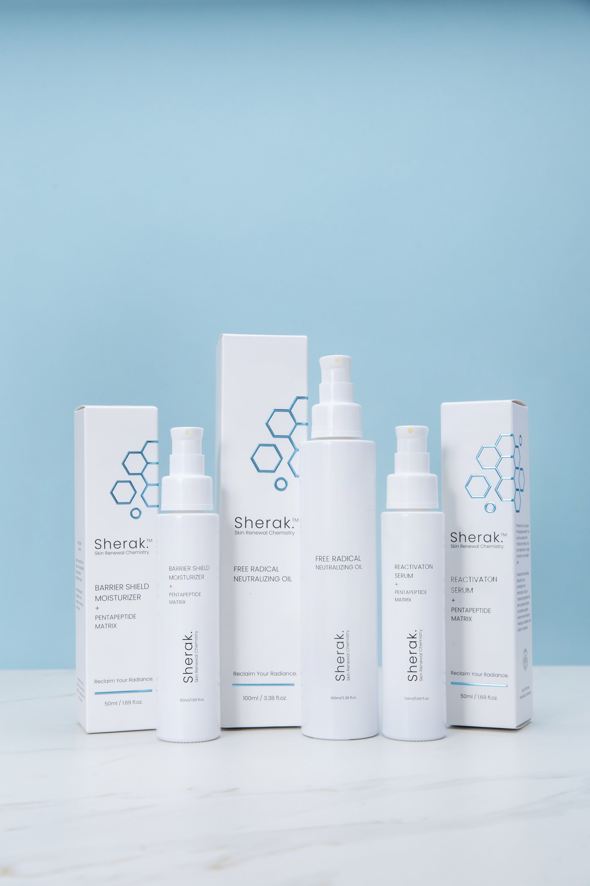 Recognizing that traditional products often stop working as skin evolves in midlife, Jennifer created Sherak as a biotechnology-powered solution tailored to the biology of maturing skin. At the core of every formula is her proprietary Pentapeptide Matrix™—a clinically advanced blend of bioengineered peptides that restore firmness, stimulate cellular renewal, and strengthen the skin barrier.